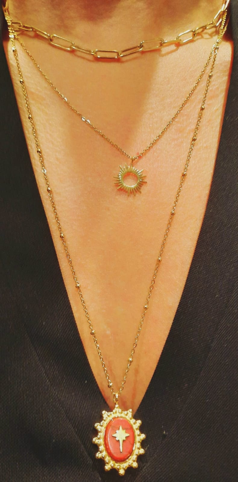 Collier Maille à trois tours rouge